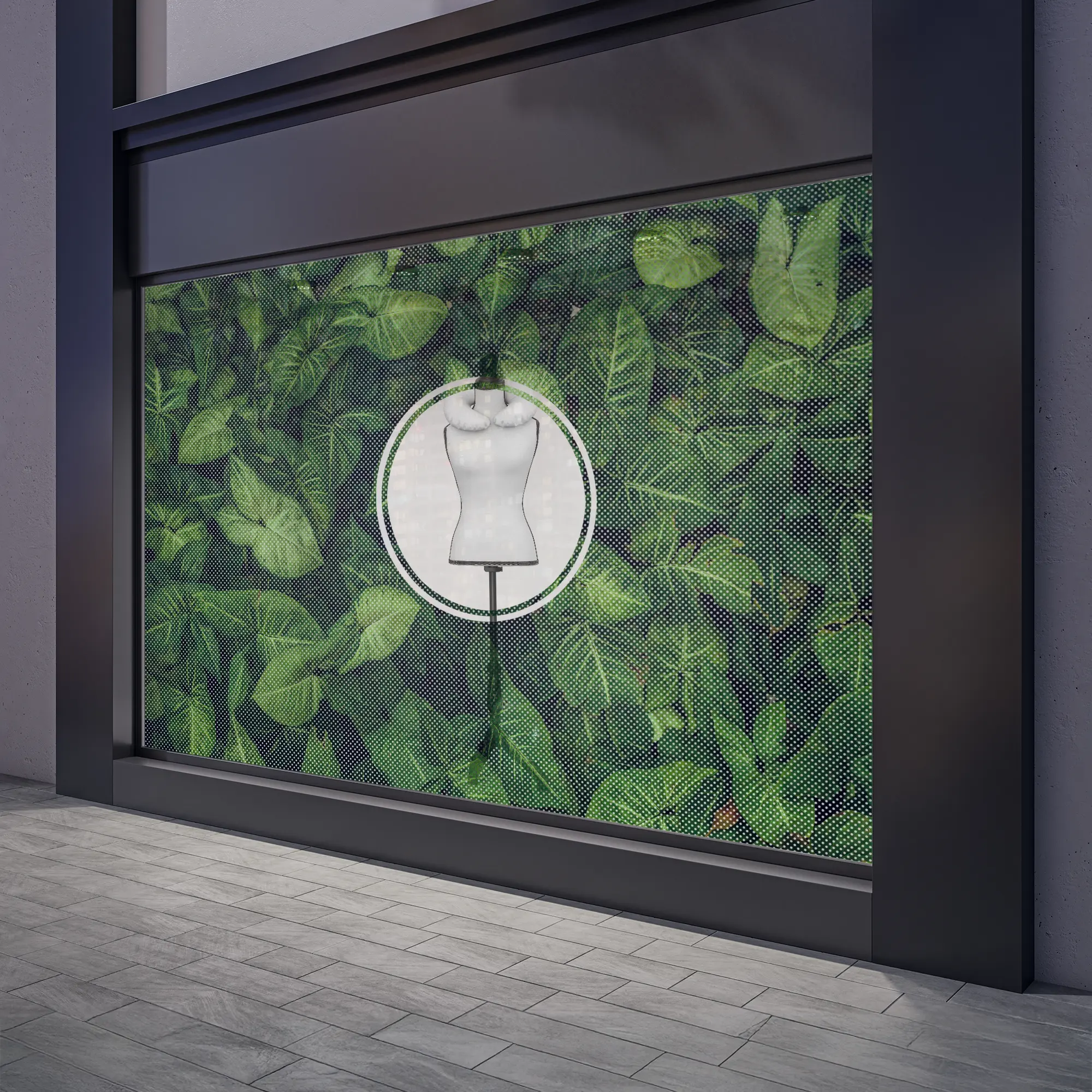 Ist eine bedruckte, perforierte Folie mit schwarzer Rückseite für den Einsatz auf transparenten Flächen z.B. Schaufenster. Auf der Frontseite ist das Druckbild sichtbar, die schwarze Rückseite ist aufgrund der Perforation blickdurchlässig.